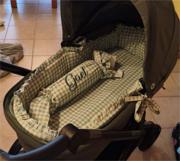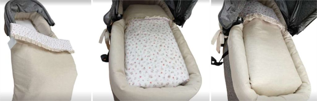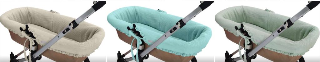 Ofrecemos cubre capazos acolchados que mejoran la adaptación al capazo y protegen la cabeza del bebé de pequeños golpes. Además, incluimos una bajera para el colchoncito, asegurando que todo el interior del capazo esté cubierto. También complementos, como podrás ver más abajo en este mismo artículo.