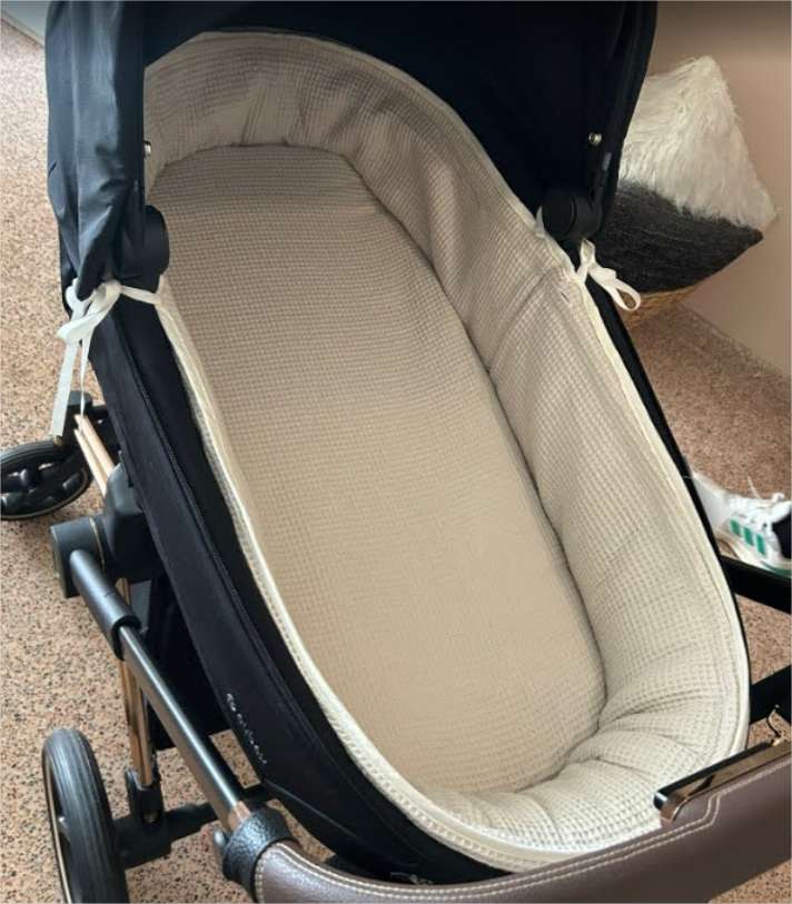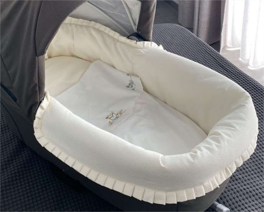 - Se incluye la bajera de colchoncito, cubriendo todo el interior del capazo.