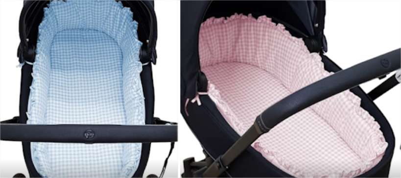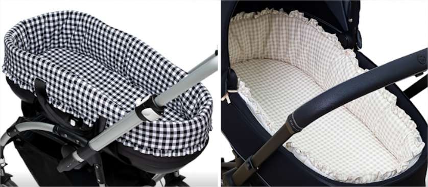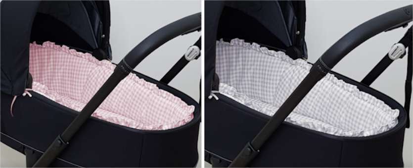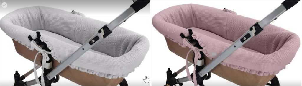 - Vistosidad: Si deseas que se vea el dobladillo desde el exterior, puedes elegir un cubre capazo con dobladillo en el borde. Ten en cuenta que si optas por el dobladillo en los pies, no podrás utilizar el cubre pies original.